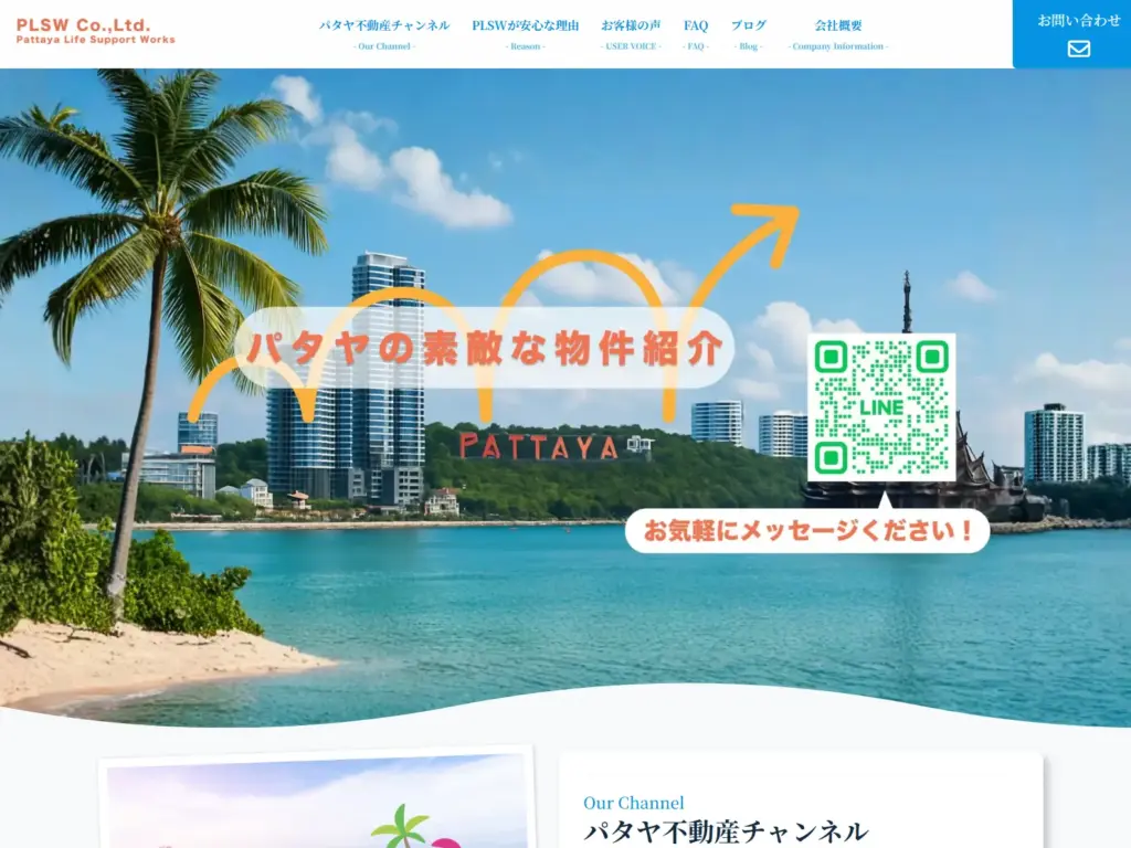 パタヤの良さを知っていただき、別荘や移住を考えている日本人の方のためのサービスを行っています。物件の仲介、また購入後のアフターサービスなど、現地でなくては行えないサービスを提供している事業者様です。